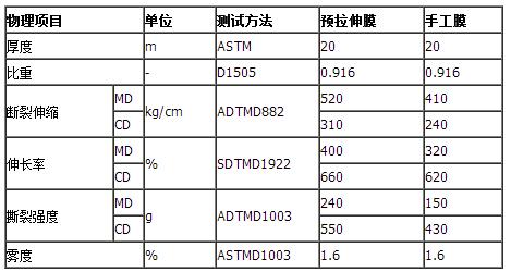 纏繞拉伸膜技術參數